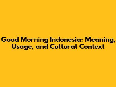 Good Morning Indonesia: Meaning, Usage, And Cultural Context