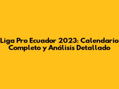 Calendario Liga Pro Ecuador 2023: Fechas Clave y Partidos Destacados